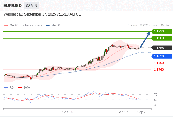 在 1.1820 之上,看涨,目标价位为 1.1900 ,然后为 1.1930 。