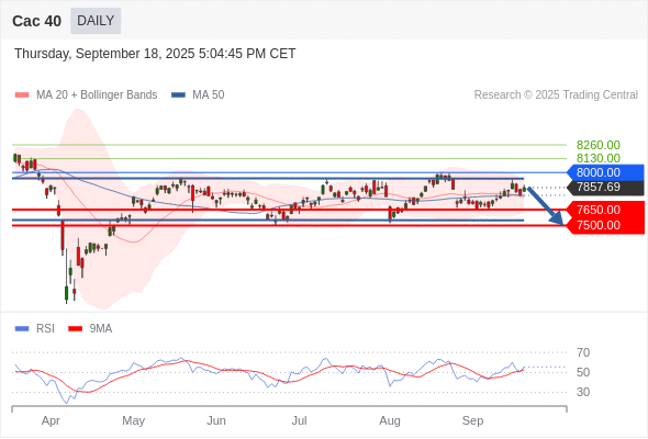 Cac 40 短线: 箱体震荡。