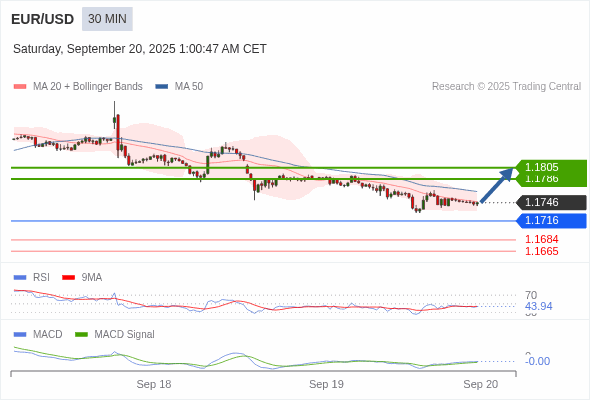 欧元/美元 当日内 : 有上涨的可能,目标价位定在 1.1805 。