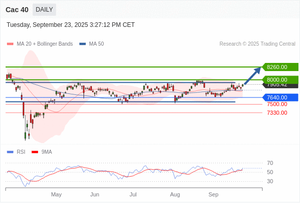 Cac 40 短线: 期待8000.00。