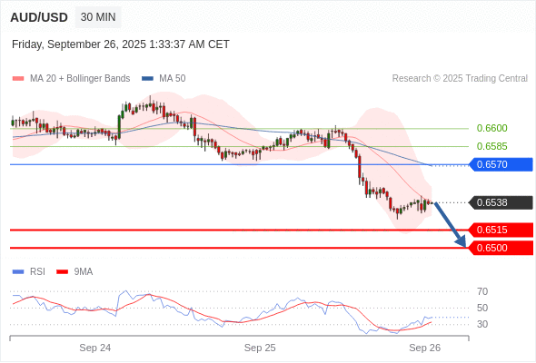 交易策略: 在 0.6570 之下,看跌,目标价位为 0.6515 ,然后为 0.6500 。