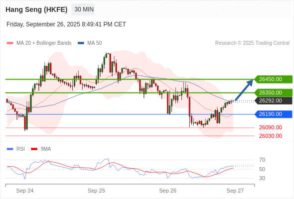 在 26190.00 之上,看涨,目标价位为 26350.00 ,然后为 26450.00 。