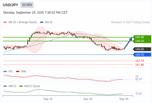 首页 > > 美元/日元 当日内 : 有上涨的可能,目标价位定在 149.48 。