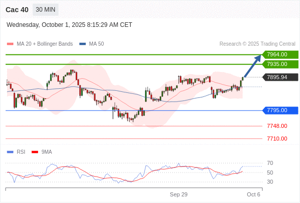 在 7795.00 之上,看涨,目标价位为 7935.00 ,然后为 7964.00 。