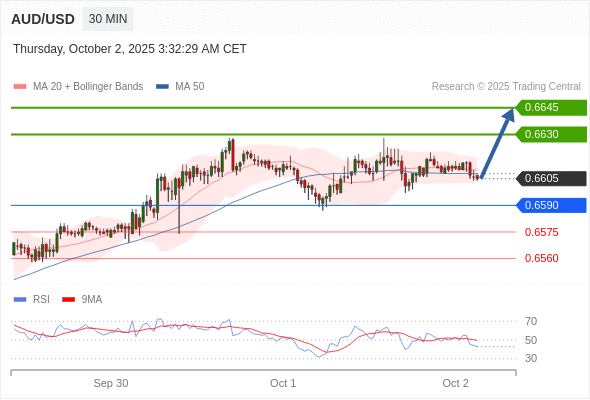 在 0.6590 之上,看涨,目标价位为 0.6630 ,然后为 0.6645 。