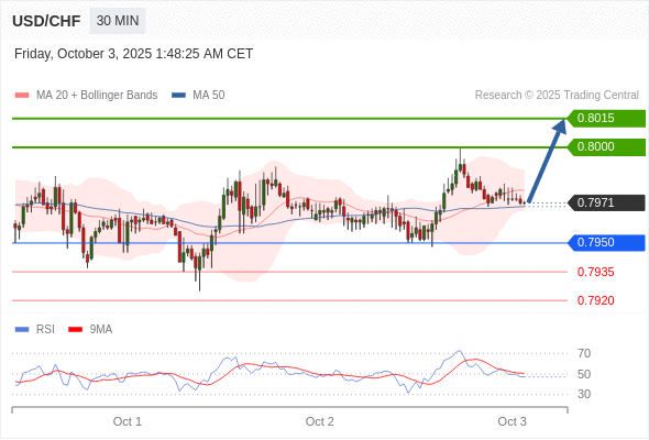 在 0.7950 之上,看涨,目标价位为 0.8000 ,然后为 0.8015 。