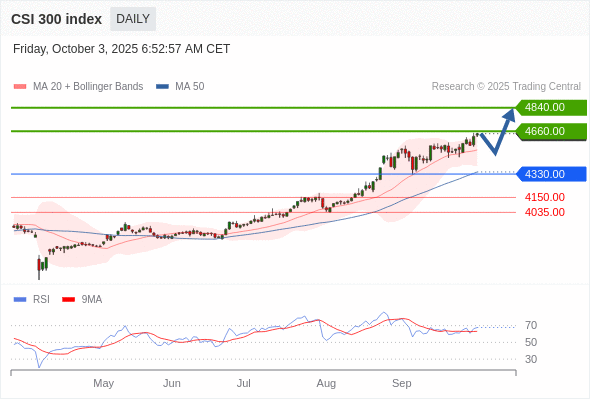 在 4330.00 之上,看涨,目标价位为 4660.00 ,然后为 4840.00 。