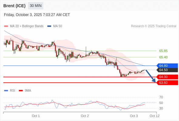 交易策略: 在 64.80 之下,看跌,目标价位为 64.00 ,然后为 63.60 。