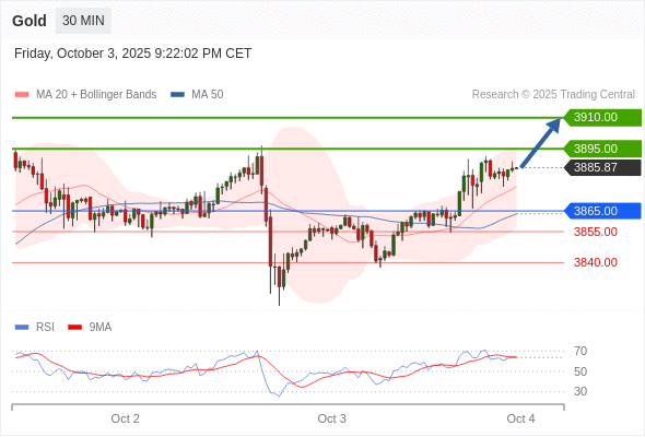 在 3865.00 之上,看涨,目标价位为 3895.00 ,然后为 3910.00 。