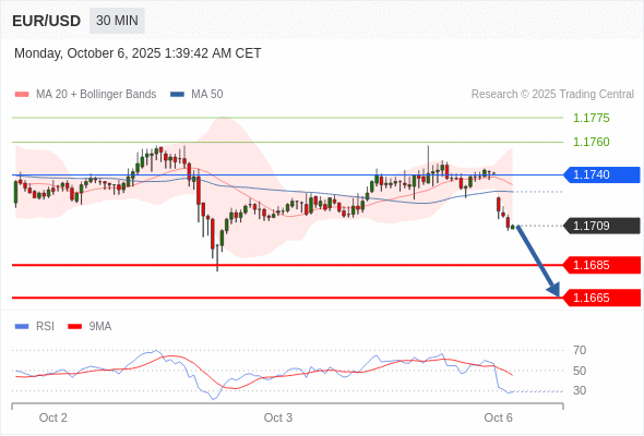 交易策略: 在 1.1740 之下,看跌,目标价位为 1.1685 ,然后为 1.1665 。