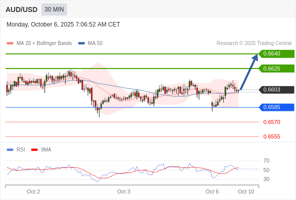 在 0.6585 之上,看涨,目标价位为 0.6625 ,然后为 0.6640 。