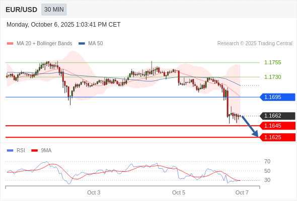 在 1.1695 之下,看跌,目标价位为 1.1645 ,然后为 1.1625 。