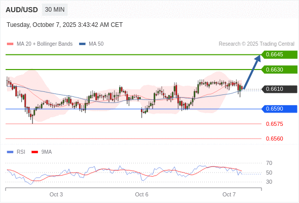 在 0.6590 之上,看涨,目标价位为 0.6630 ,然后为 0.6645 。