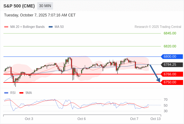 交易策略: 在 6800.00 之下,看跌,目标价位为 6766.00 ,然后为 6750.00 。