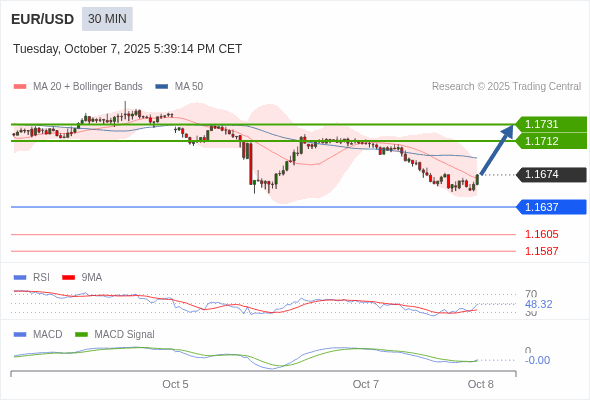 欧元/美元 当日内 : 有上涨的可能,目标价位定在 1.1731 。