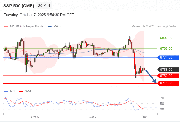 交易策略: 在 6774.00 之下,看跌,目标价位为 6750.00 ,然后为 6740.00 。