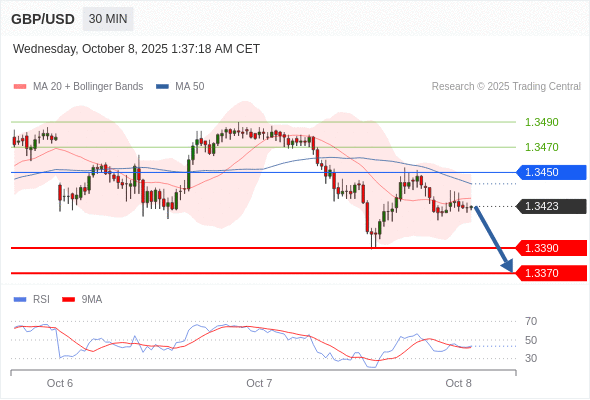在 1.3450 之下,看跌,目标价位为 1.3390 ,然后为 1.3370 。