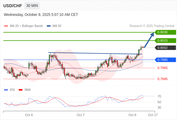 在 0.7980 之上,看涨,目标价位为 0.8015 ,然后为 0.8030 。