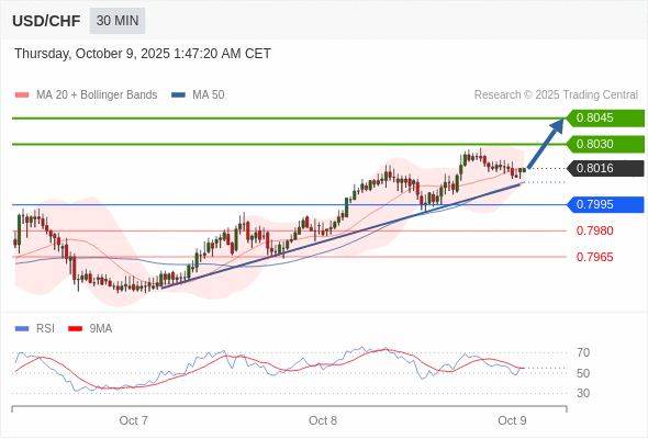 在 0.7995 之上,看涨,目标价位为 0.8030 ,然后为 0.8045 。