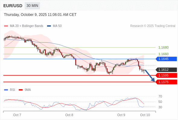 在 1.1645 之下,看跌,目标价位为 1.1595 ,然后为 1.1575 。