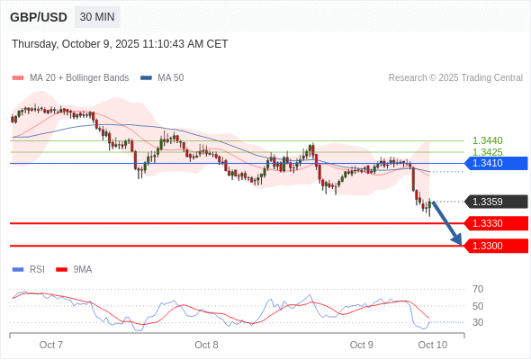 在 1.3410 之下,看跌,目标价位为 1.3330 ,然后为 1.3300 。