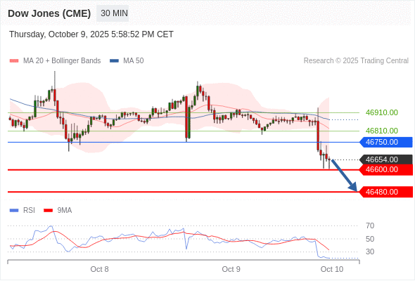 在 46750.00 之下,看跌,目标价位为 46600.00 ,然后为 46480.00 。
