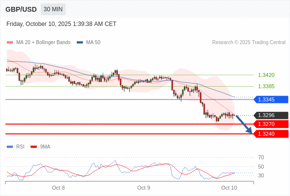 在 1.3345 之下,看跌,目标价位为 1.3270 ,然后为 1.3240 。
