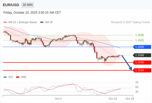 在 1.1600 之下,看跌,目标价位为 1.1540 ,然后为 1.1510 。