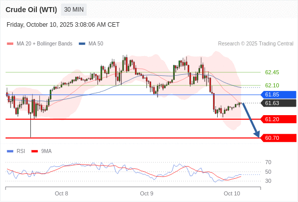 在 61.85 之下,看跌,目标价位为 61.20 ,然后为 60.70 。