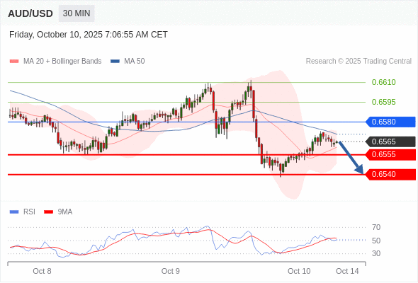 交易策略: 在 0.6580 之下,看跌,目标价位为 0.6555 ,然后为 0.6540 。