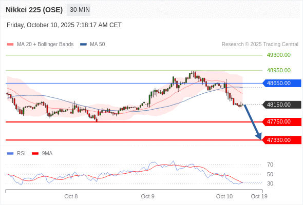 在 48650.00 之下,看跌,目标价位为 47750.00 ,然后为 47330.00 。