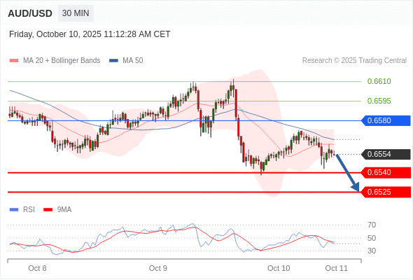 在 0.6580 之下,看跌,目标价位为 0.6540 ,然后为 0.6525 。