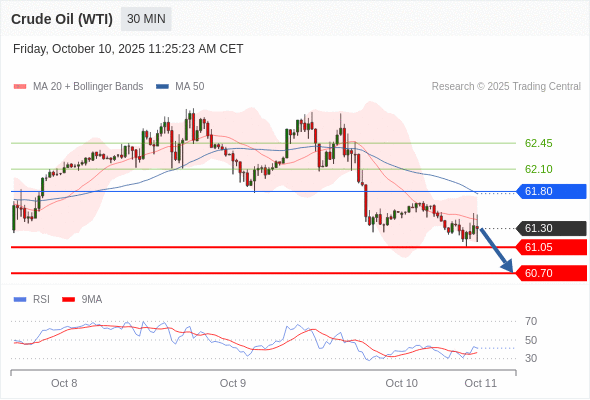 在 61.80 之下,看跌,目标价位为 61.05 ,然后为 60.70 。