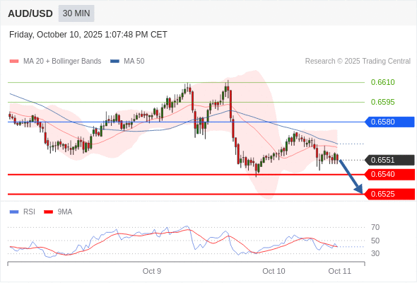 交易策略: 在 0.6580 之下,看跌,目标价位为 0.6540 ,然后为 0.6525 。