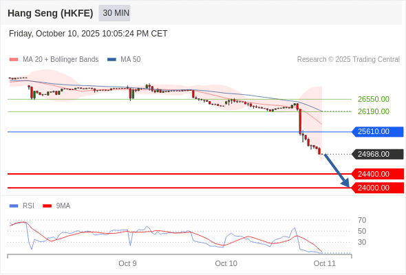 交易策略: 在 25610.00 之下,看跌,目标价位为 24400.00 ,然后为 24000.00 。