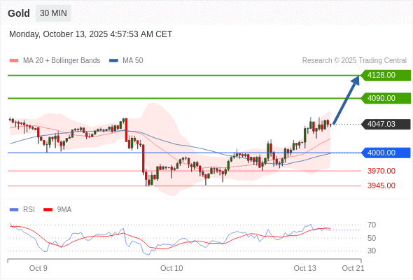 在 4000.00 之上,看涨,目标价位为 4090.00 ,然后为 4128.00 。