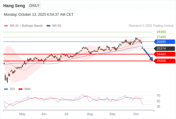 恒生指数 短线: 反转向下。