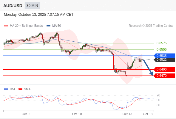 在 0.6535 之下,看跌,目标价位为 0.6490 ,然后为 0.6470 。