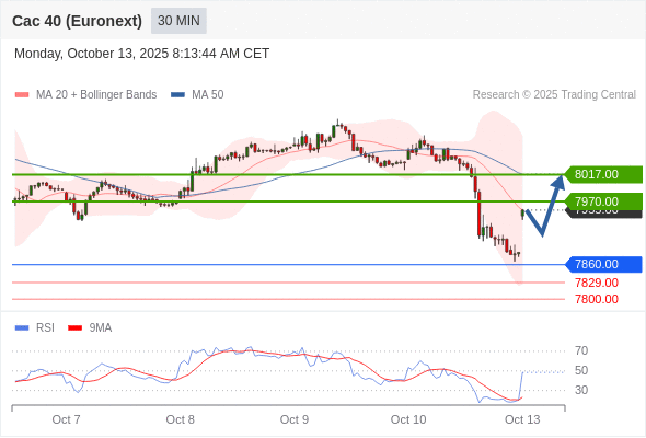 在 7860.00 之上,看涨,目标价位为 7970.00 ,然后为 8017.00 。