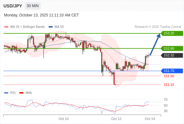 在 151.70 之上,看涨,目标价位为 152.60 ,然后为 153.20 。