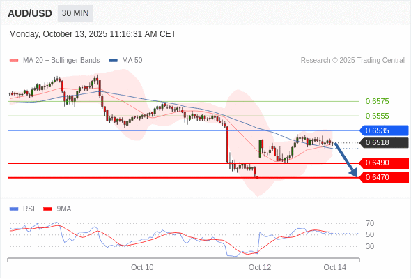 交易策略: 在 0.6535 之下,看跌,目标价位为 0.6490 ,然后为 0.6470 。