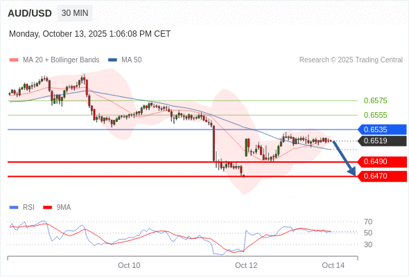 交易策略: 在 0.6535 之下,看跌,目标价位为 0.6490 ,然后为 0.6470 。