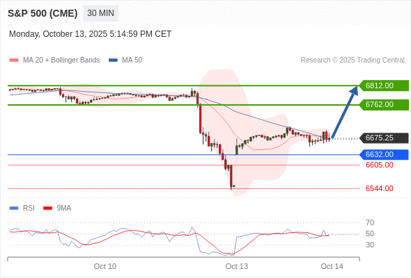在 6632.00 之上,看涨,目标价位为 6762.00 ,然后为 6812.00 。