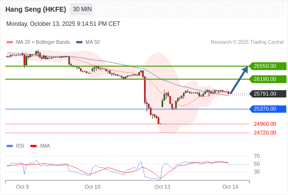 在 25370.00 之上,看涨,目标价位为 26190.00 ,然后为 26550.00 。