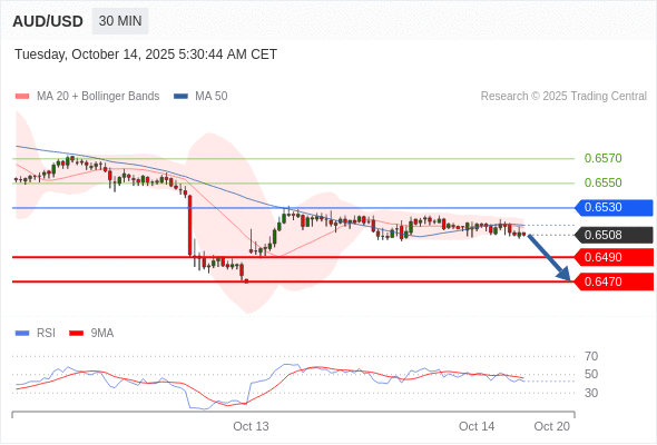 在 0.6530 之下,看跌,目标价位为 0.6490 ,然后为 0.6470 。