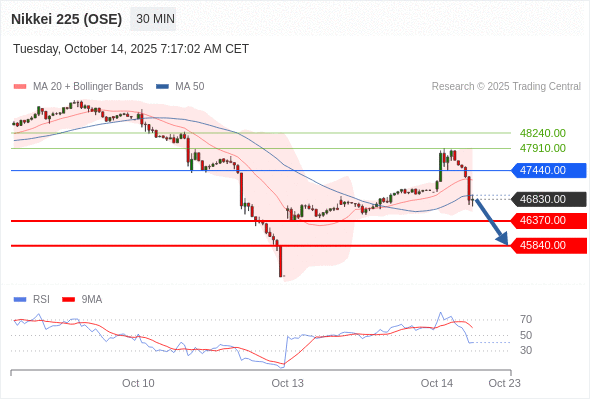 在 47440.00 之下,看跌,目标价位为 46370.00 ,然后为 45840.00 。