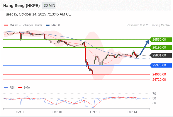 在 25370.00 之上,看涨,目标价位为 26190.00 ,然后为 26550.00 。