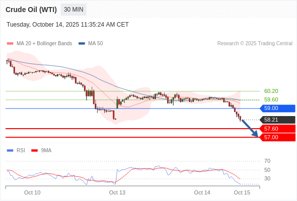 交易策略: 在 59.00 之下,看跌,目标价位为 57.60 ,然后为 57.00 。
