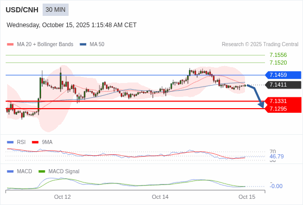美元/人民币 当日内 : 看跌,在 7.1459 之下。