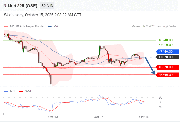 交易策略: 在 47440.00 之下,看跌,目标价位为 46370.00 ,然后为 45840.00 。
